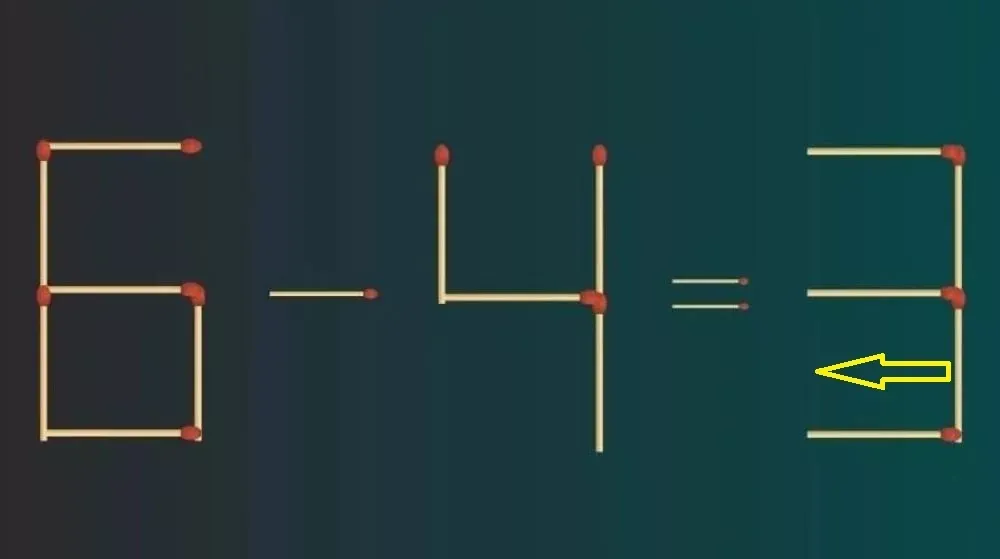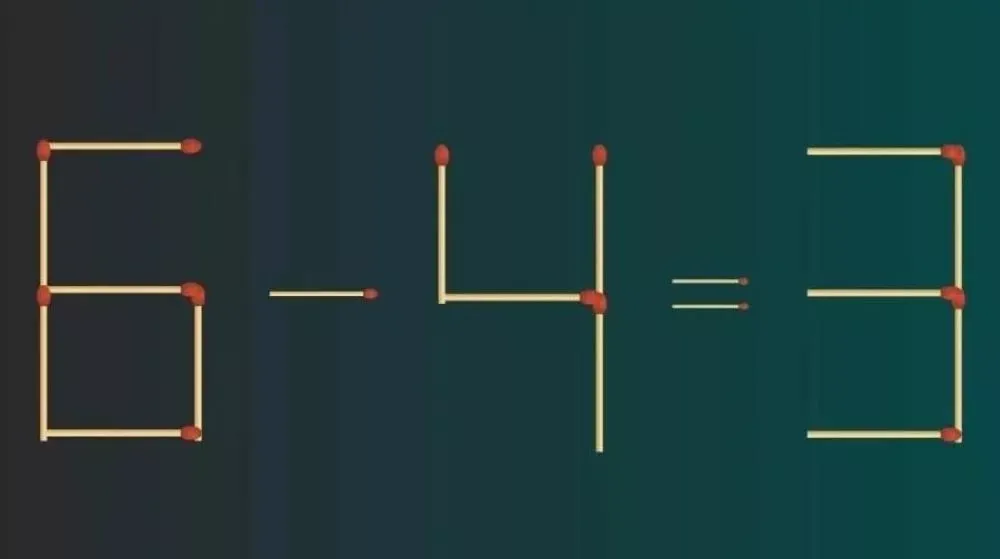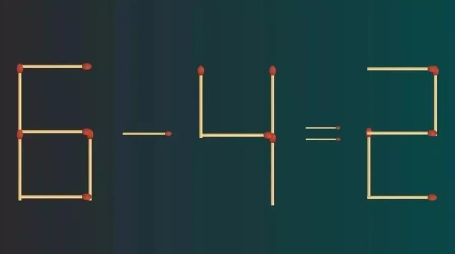 Перед вами интересная задача: на изображении представлено неверное равенство 6 — 4 = 3. Каждый из нас понимает, что здесь есть ошибка. Чтобы исправить её, достаточно переместить всего одну спичку. Попробуйте решить эту головоломку за 10 секунд и почувствуйте себя настоящим математическим гением!