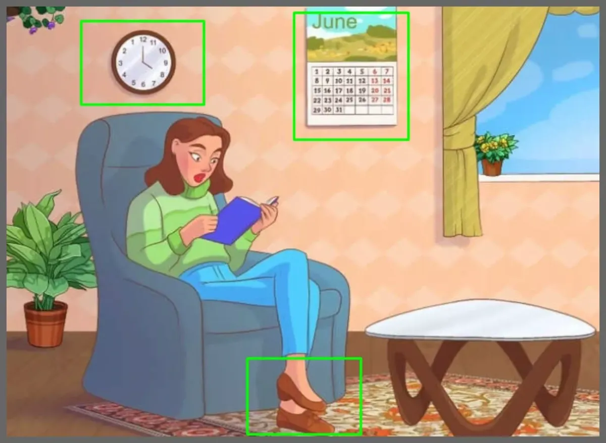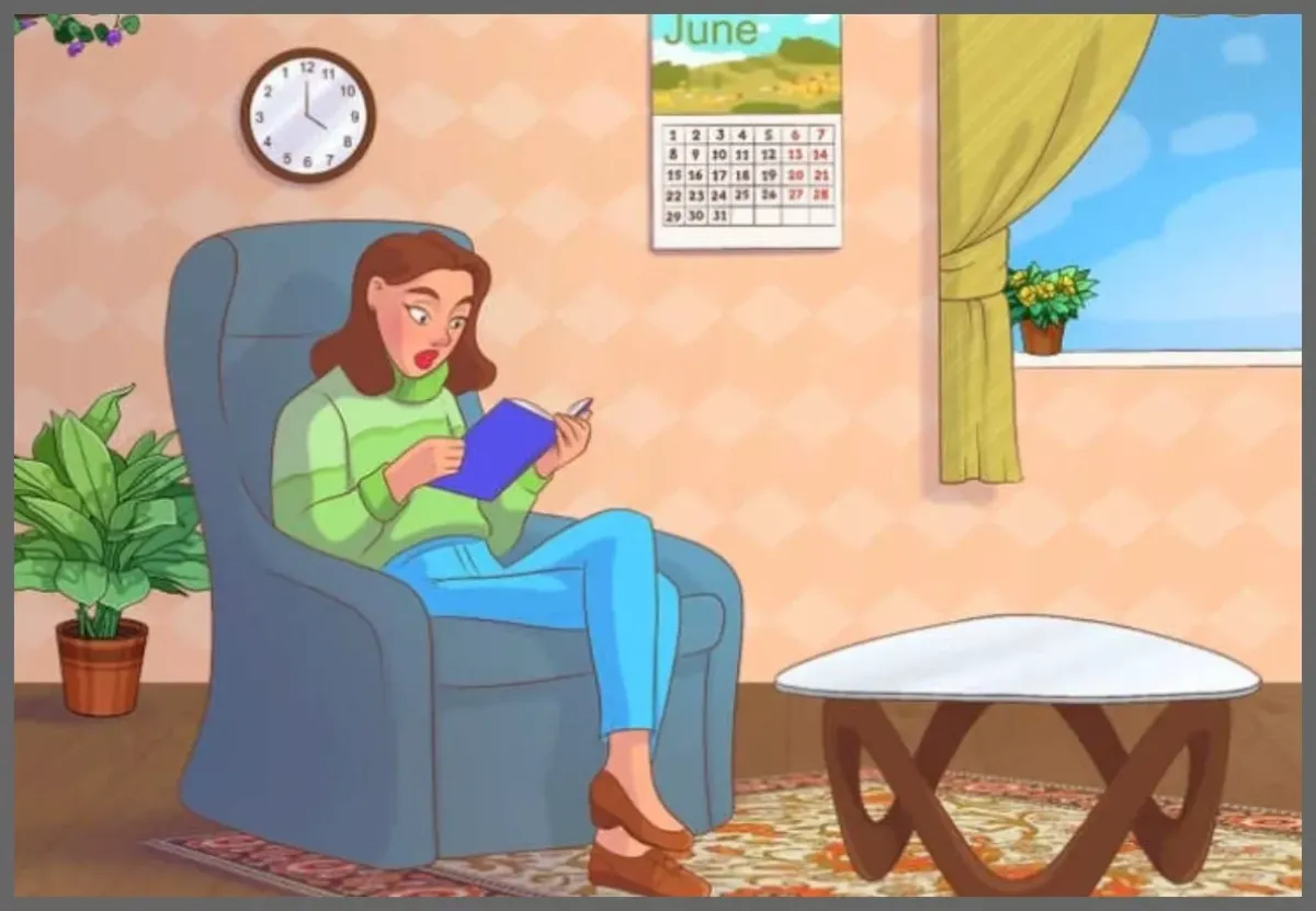 Посмотрите на изображение в течение 20 секунд. На нем изображена девушка, сидящая в кресле с книгой, а перед ней стоит стол. На первый взгляд, все выглядит нормально, но это не так. Постарайтесь найти три ошибки, которые допустил художник.