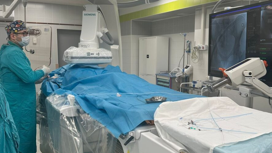 Заведующий отделением рентгенохирургических методов диагностики и лечения Булат Шарафутдинов провел дистанционную консультацию, изучил результаты обследования и подтвердил возможность проведения эмболизации маточных артерий (ЭМА). Это малоинвазивное вмешательство было выполнено через сосудистый доступ по лучевой артерии, что позволило перекрыть кровоток в миоматозных узлах и добиться их постепенного уменьшения, сохранив при этом матку. После операции пациентка остаётся под дистанционным наблюдением специалистов.