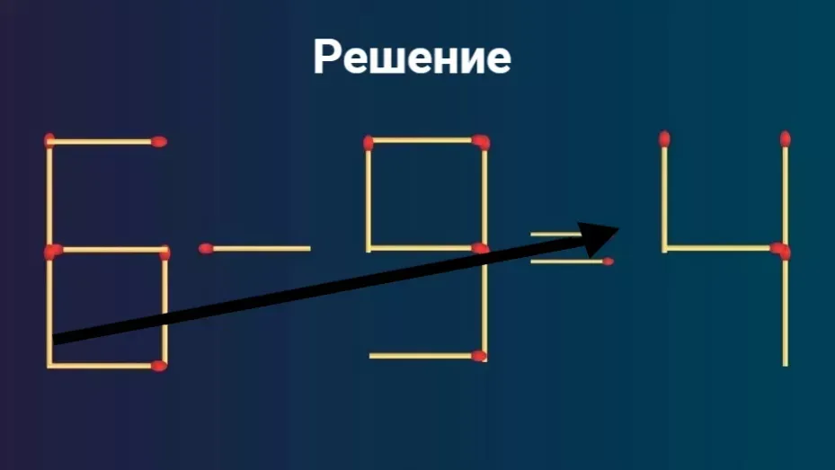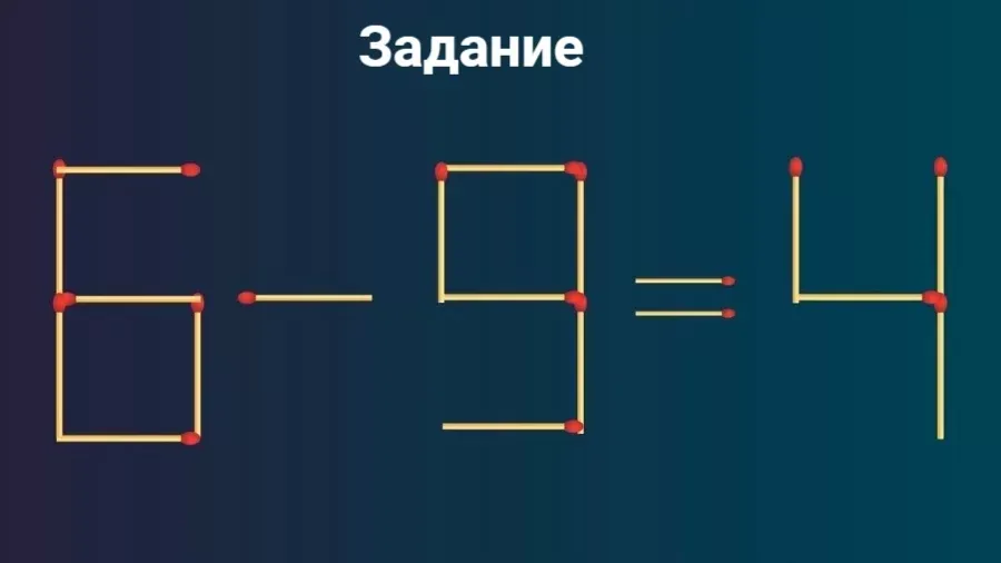 Переставьте спичку и решите головоломку: как исправить равенство 6 — 9 = 4