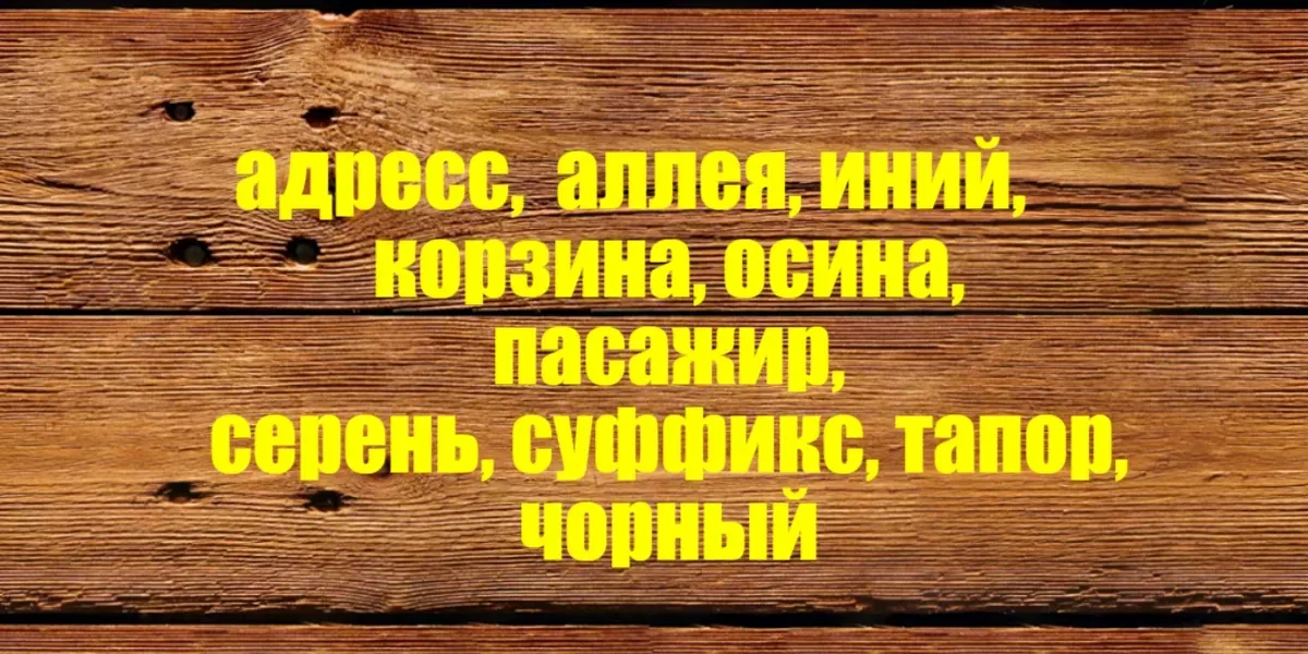Список слов: адресс, аллея, иний, корзина, осина, пасажир, серень, суффикс, тапор, чорный.