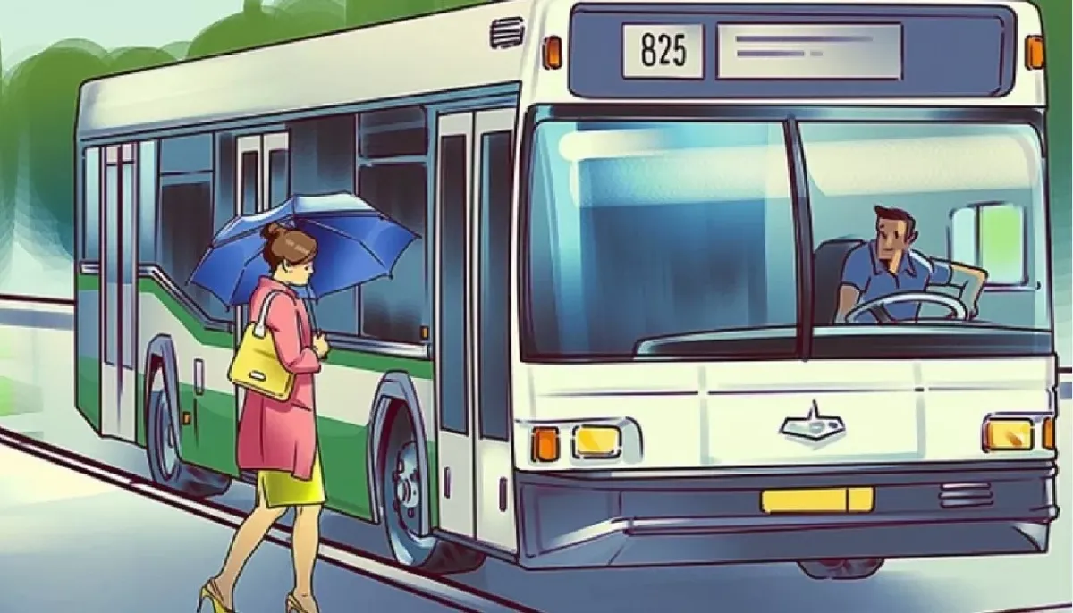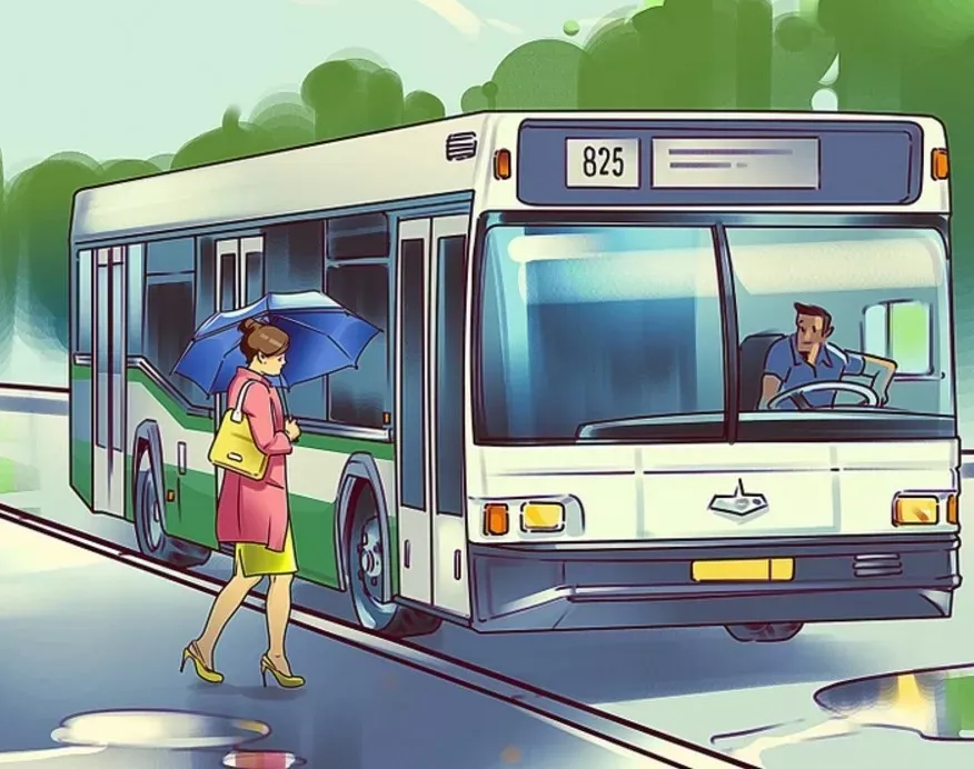 На изображении изображен обычный автобус, однако художник не добавил важные элементы, которые делают поездку безопасной, такие как боковые зеркала и щетки стеклоочистителя.