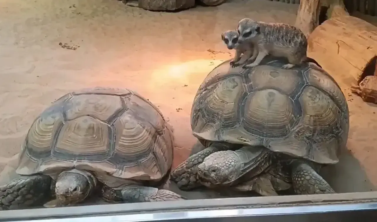Сурикаты в Казанском зооботсаду используют черепах как транспорт