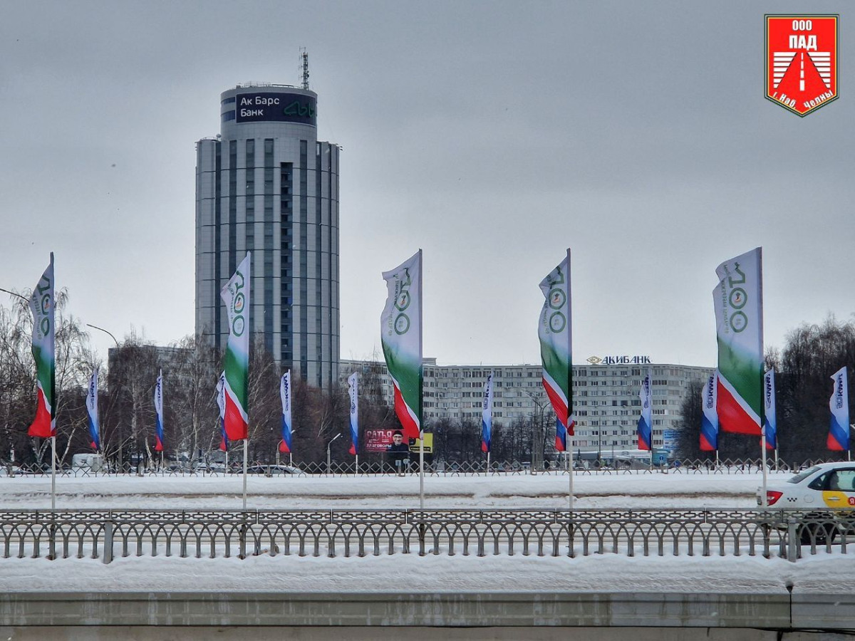 Аналогичные конструкции также появились на мостах в районе автостанции и остановки «Челныгорстрой», а также на пересечениях ключевых магистралей: проспектов Хасана Туфана / Мира, Хасана Туфана / Московский, Вахитова / Мира, Вахитова / Московский. Всего в разных районах Набережных Челнов будет установлено 485 флагов.