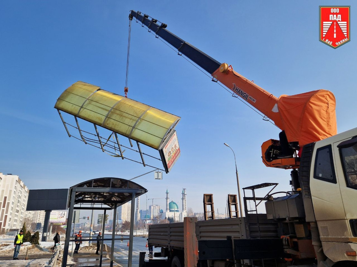 На остановке общественного транспорта «16-й комплекс» в Набережных Челнах начались работы по установке нового павильона. Старая конструкция была повреждена в результате дорожно-транспортного происшествия, произошедшего 11 марта.